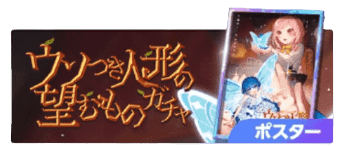 ![]() 【ウソつき人形の 望むもの】 【入手方法】 ![]() ウソつき人形の 望むものガチャ ・恒常ガチャ ・メダル交換 翠玉のメダル × 60(ショップ▸メダル交換) 【ポスター評価】 | Edenに所属するアクターの演技力が28%上昇 自身の演技力が17.5%上昇 センスによるP.ゲージの獲得量が48%UP ◆ 発動条件:Edenに所属するアクターが装備 レベル5で解放 公演開始時、P.ゲージが24上昇 ◆ 発動条件:Edenに所属するアクターが装備 レベル7で解放 |