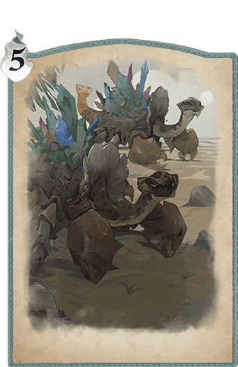 | アッシュワインダーを1体召喚。フィールド上にアッシュワインダーが存在している間、呪文カードや召喚カードを使用するたびに、小型のアッシュワインダー1体が追加で召喚される。 *小型のアッシュワインダーは素早く目標に突進して範囲ダメージを与える。この攻撃は空中ユニットにも命中する | ||