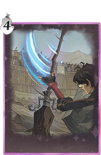 | 魔法使いが呪文カードを2枚使用するたびに、ちびハリーは姿をくらまして優先的に相手の魔法使いを攻撃し、2枚のカードのコスト差によって呪文を放つ。2枚のカードのコスト差が大きいほどダメージも大きくなる。 | ||