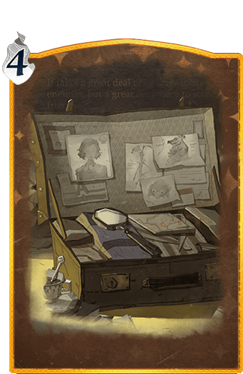 | ちびハーマイオニーを召喚。 *プレイヤーの手札のコストを1減らす。使用後、カードのコストは元に戻る。同時に、勢力を消費して専門研究を行い、敵の呪文を学習する。学習下呪文カード(コスト-3)はプレイヤーのデッキに入る。1回のみ使用可能。1回の専門研究ごとに、1つの呪文しか学習できない。また、敵が呪文カードを使用すると、ハーマイオニーの学習速度も上がる。学習下呪文カードのレベルは、ちびハーマイオニーのカードレベルと一致する。 | ||
