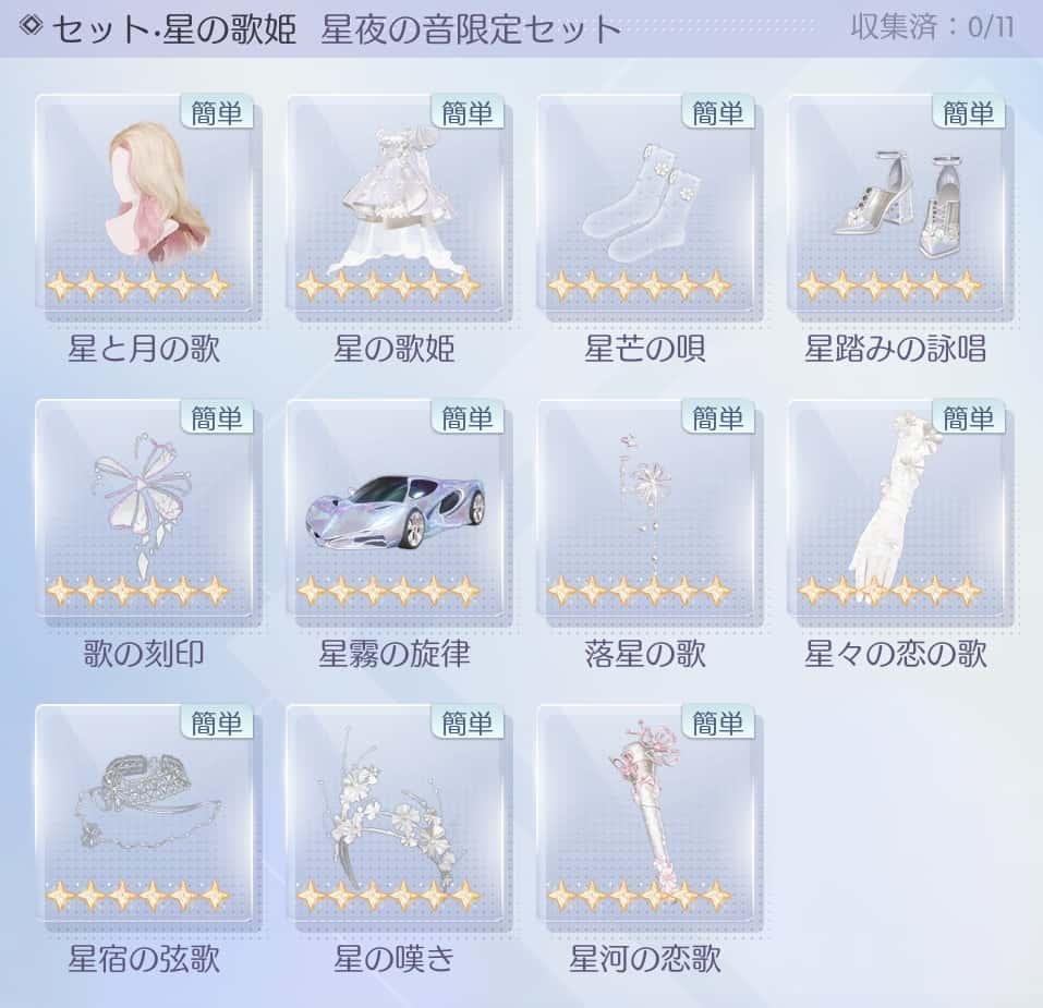 | 【コーデセット】 ★6 星の歌姫 ★5 連なる星々 他 | |