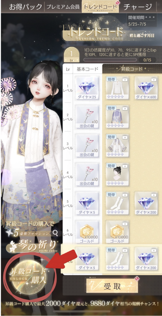 昇級コード(有料解放分)にはダイヤ(最大2000